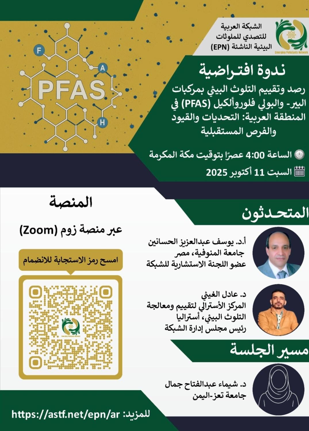 أصدرت الشبكة العربية للتصدي للملوثات البيئية الناشئة (EPN)، التابعة للمؤسسة العربية للعلوم والتكنولوجيا، تقريرها الفني الأول حول التلوث البيئي بمركبات البير والبولي فلوروألكيل (PFAS) في العالم العربي. ويعرض التقرير التحديات البيئية والصحية الناجمة عن هذه المركبات، التي تعرف عالميا بـ “المواد الكيميائية الأبدية”. كما أعلنت الشبكة عن تنظيم ندوة افتراضية لعرض النتائج يوم السبت 11 أكتوبر 2025، الساعة الرابعة عصرا بتوقيت مكة المكرمة، عبر هذا الرابط.