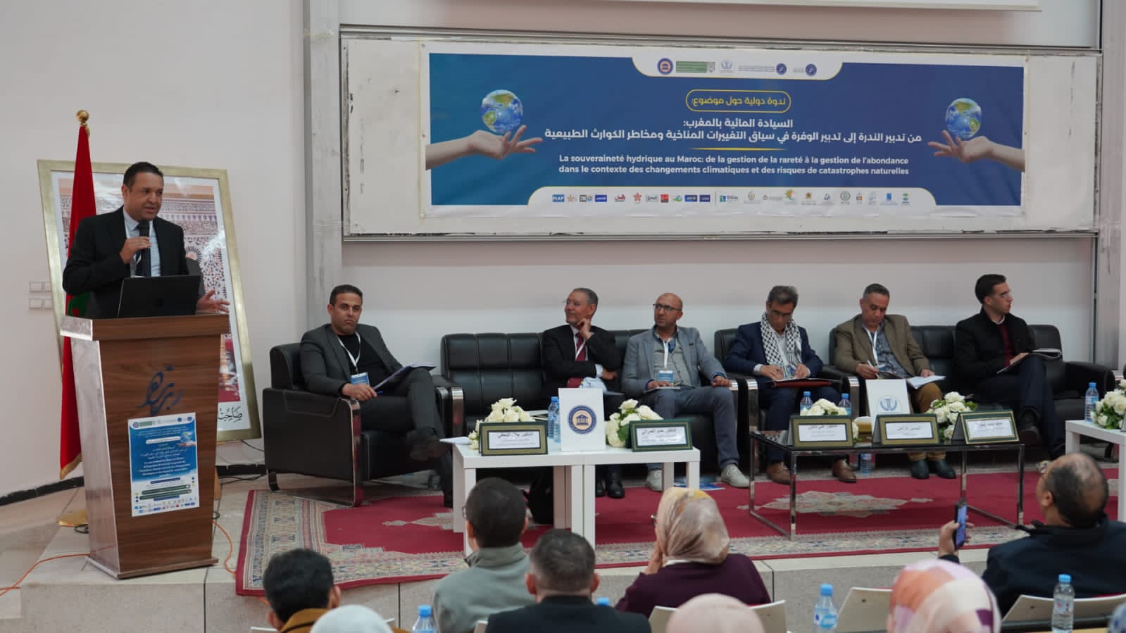 ومنذ الجلسات الأولى، برز بوضوح أن التحدي لم يعد يقتصر على تدبير الندرة، بل يتعداه إلى التفكير في كيفية تدبير الوفرة حين تتحقق، دون أن تتحول إلى مصدر جديد للمخاطر. وفي هذا السياق، استحضر المتدخلون البرامج الوطنية الكبرى المرتبطة بتأمين التزود بالماء الصالح للشرب ومياه السقي، مؤكدين أن هذه الدينامية تعكس انتقالا تدريجيا من منطق رد الفعل إلى منطق الاستباق.